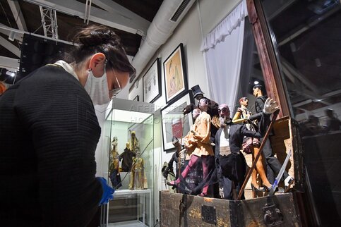 - Описание: Выставка «Театр движущейся скульптуры. Иван Ефимов, Нина Симонович-Ефимова. Сто лет со дня основания» в Государственном центральном театральном музее имени Бахрушина.