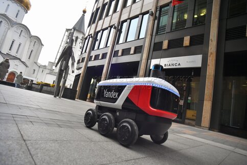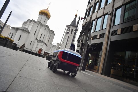 • Описание: Робот-курьер «Яндекс.Ровер» в центре Москвы.