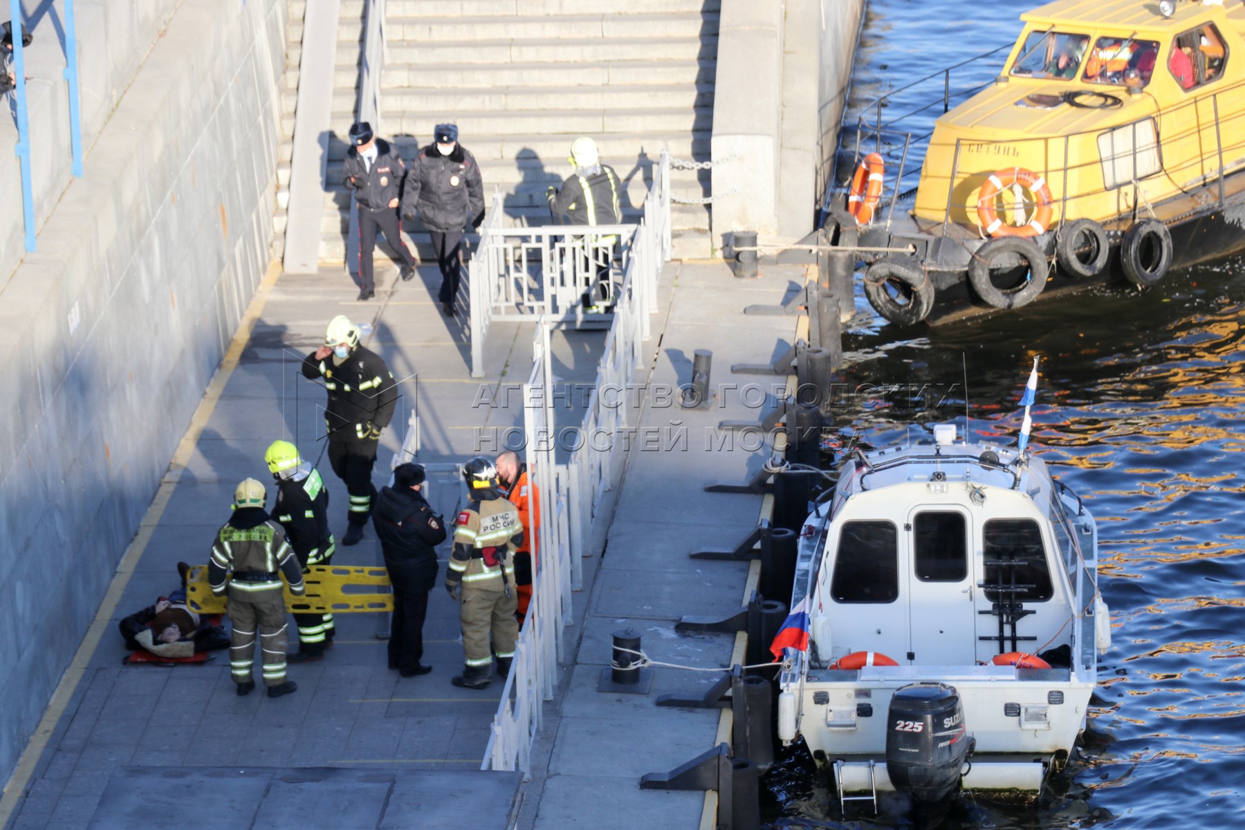- Заголовок: Работа экстренных служб на месте падения автомобиля в Москву-реку в районе Пречистенской набережной