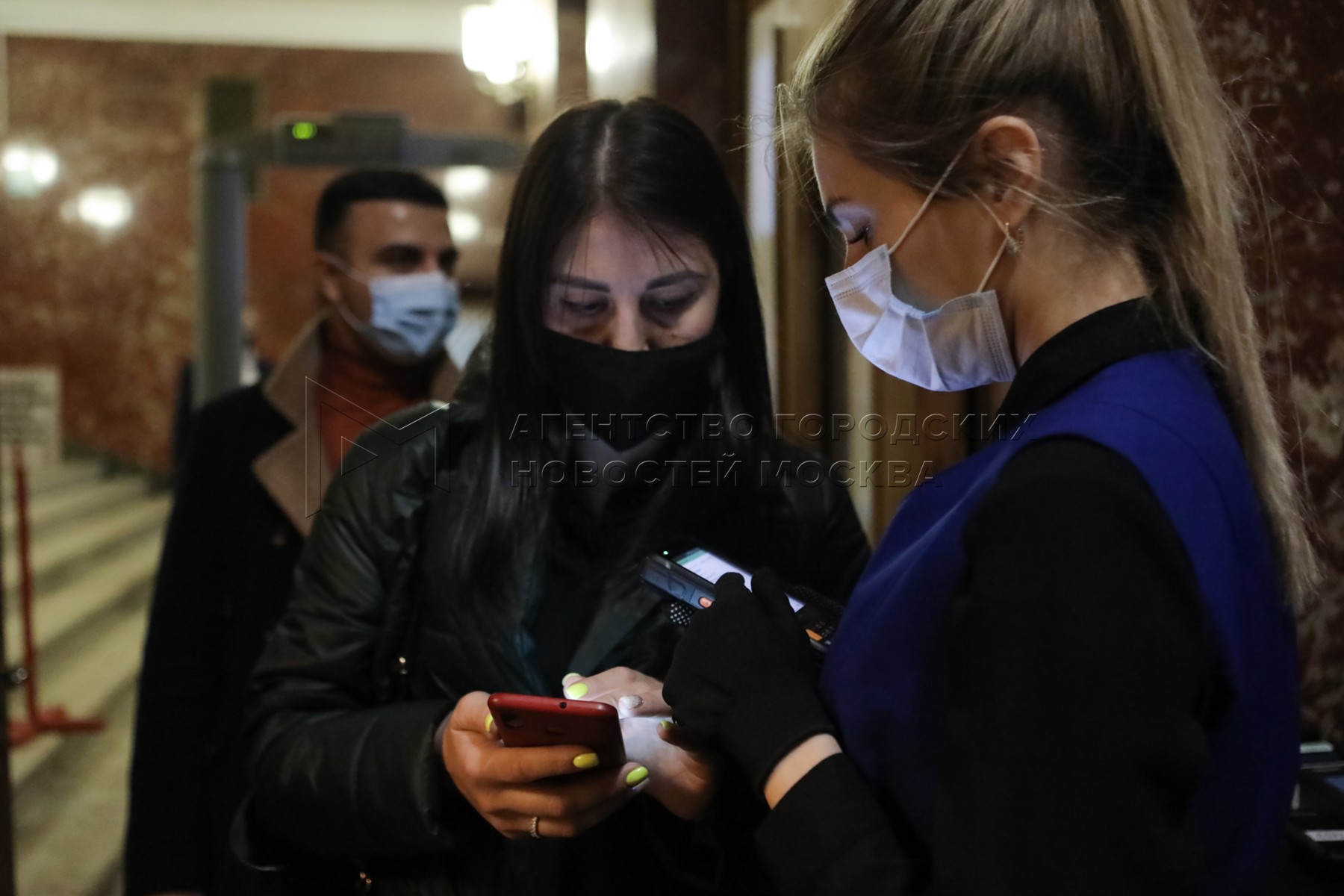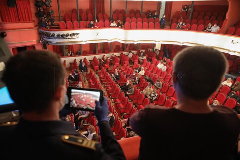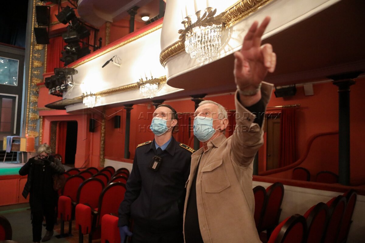 Проверка Московского академического театра имени Маяковского на соблюдение перчаточно-масочного режима и норм заполняемости зрительного зала.