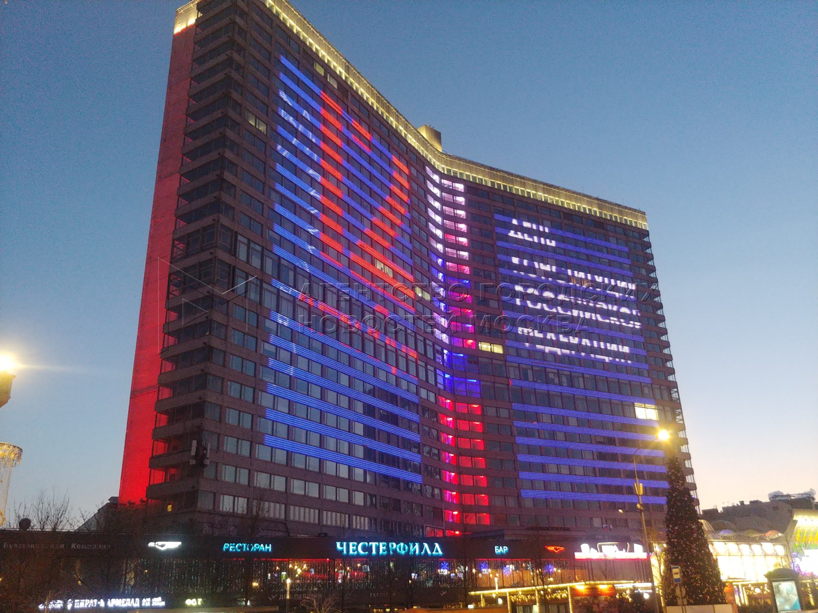 • Заголовок: Праздничная иллюминация на фасадах домов на Новом Арбате в День Конституции РФ