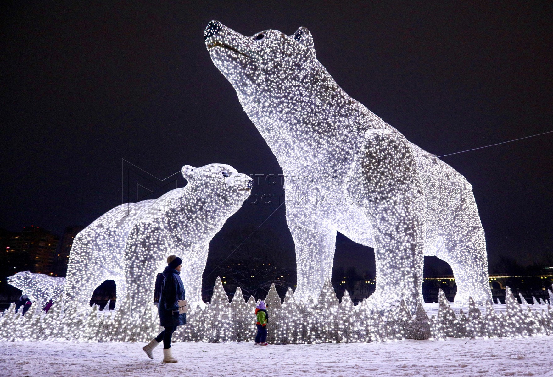 • Описание: Арт-объекты в виде полярных медведей в парке у Ростокинского акведука.