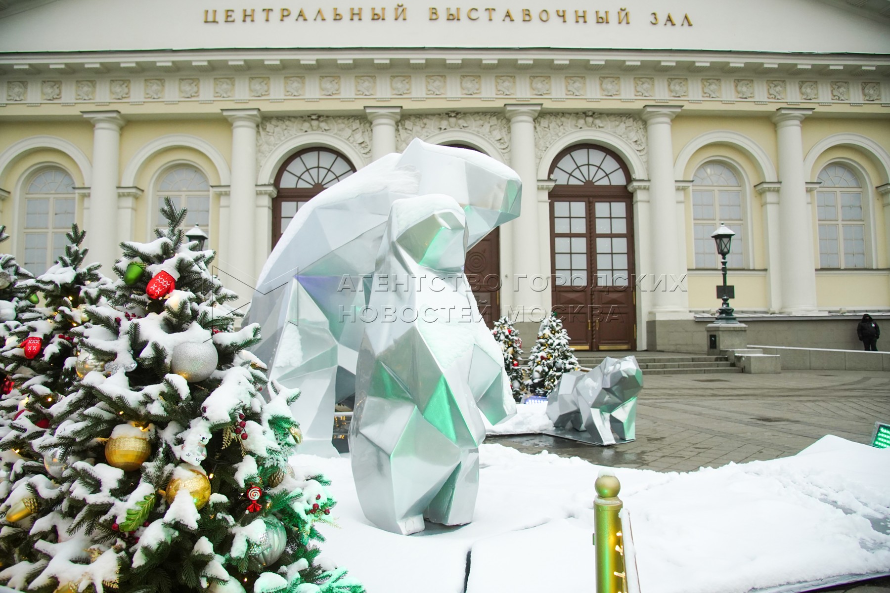 Арт-объекты в виде полярных медведей в парке у Ростокинского акведука.