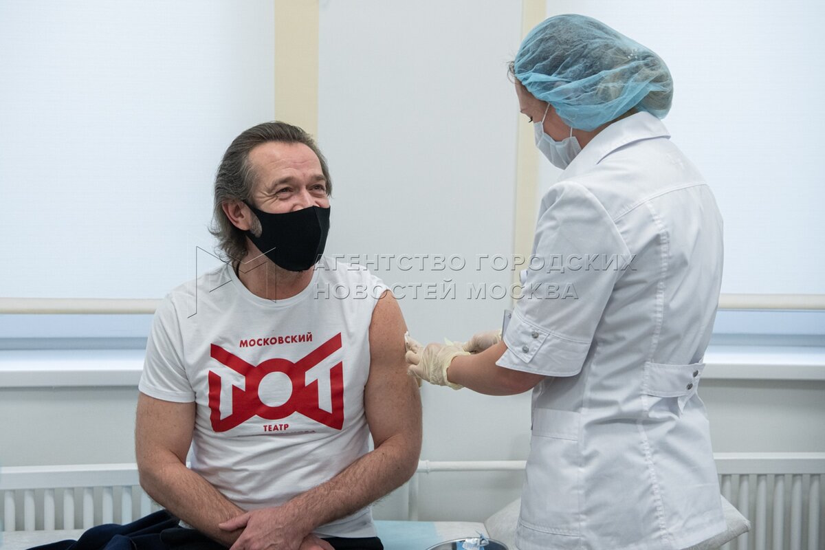 • Описание: Актер, режиссер, художественный руководитель Московского театра Олега Табакова Владимир Машков во время вакцинации от COVID-19 в городской поликлинике №68. Фото: Максим Мишин, пресс-служба мэра и правительства Москвы.