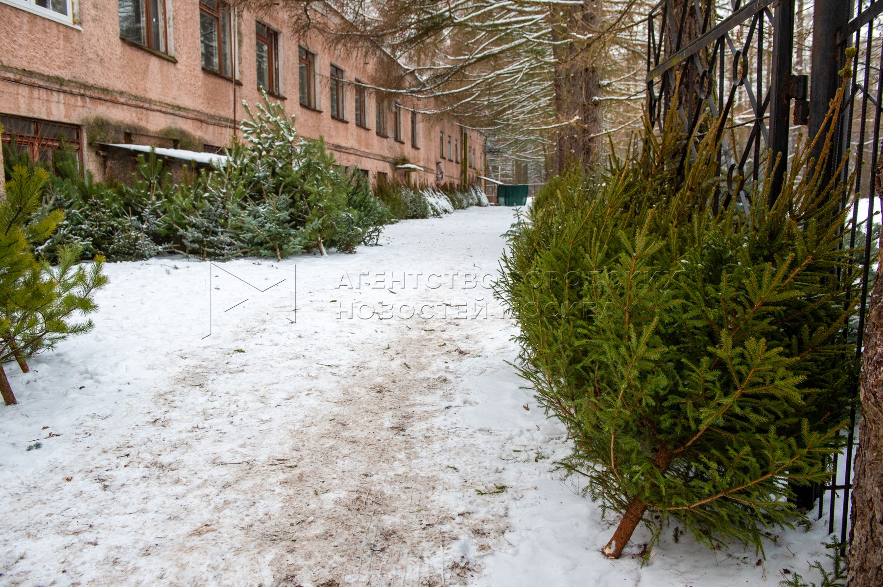 • Описание: Рубка и продажа хвойных деревьев в преддверии Нового года в Ивантеевском лесопитомнике Московской области.