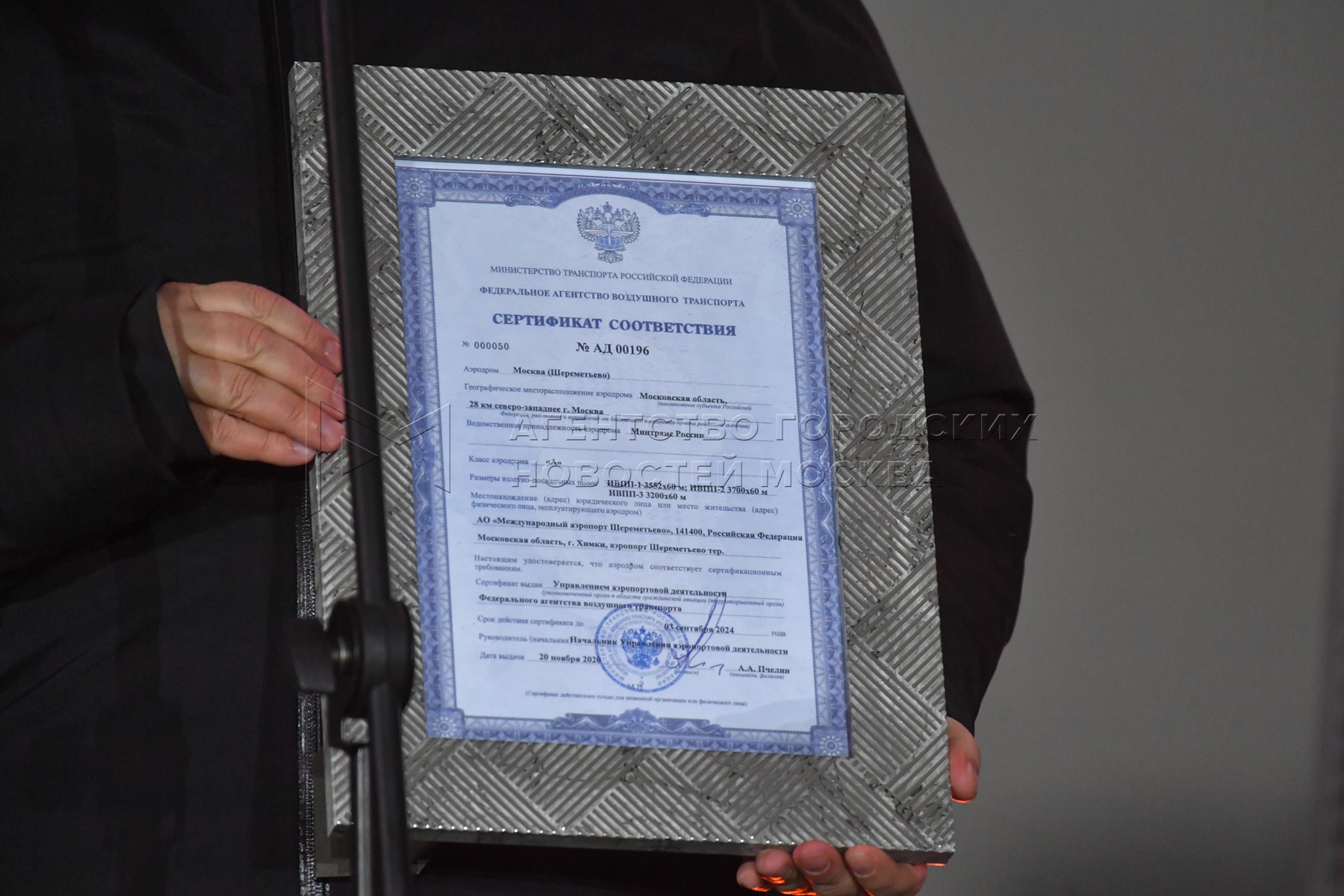 - Описание: Открытие первой взлетно-посадочной полосы международного аэропорта Шереметьево после реконструкции.
