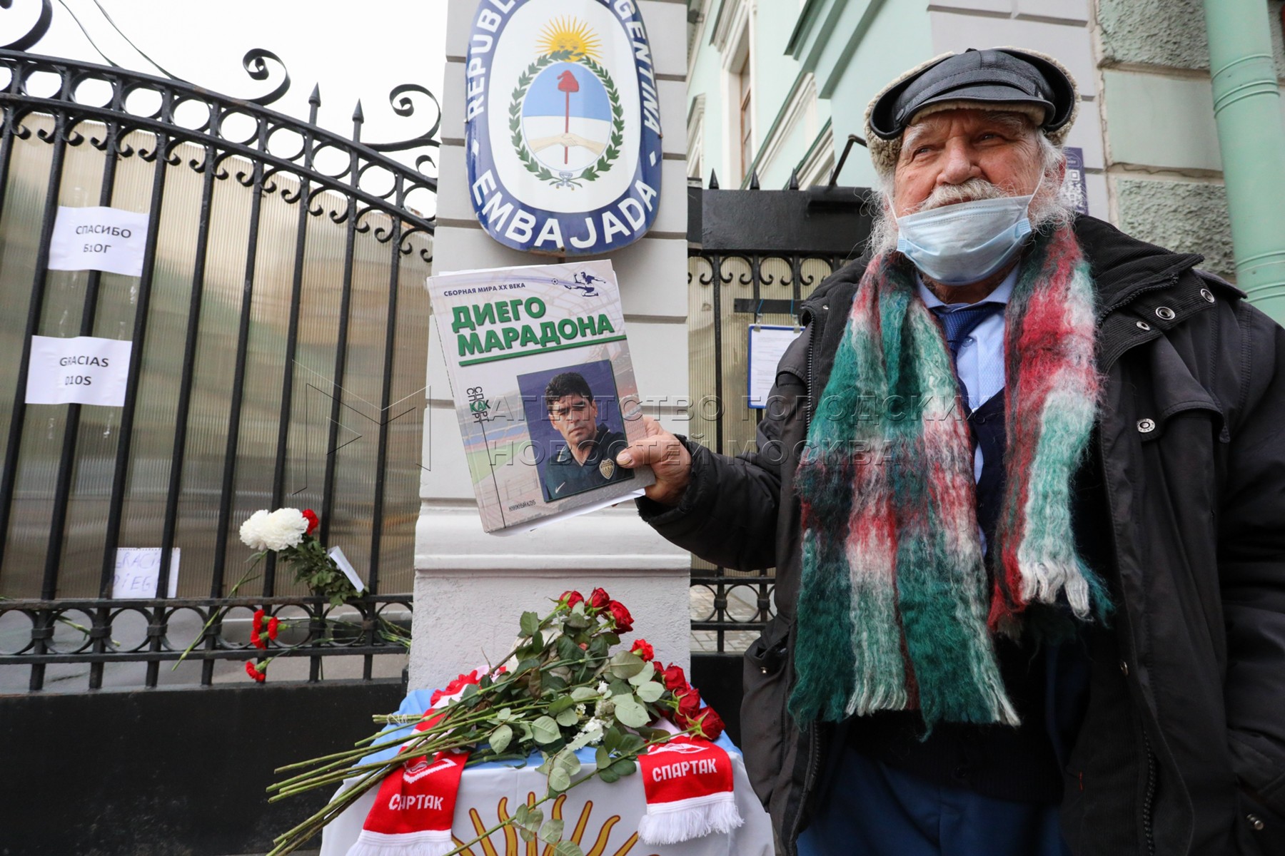• Описание: Цветы у посольства Аргентины в Москве в память о футболисте Диего Марадоне.