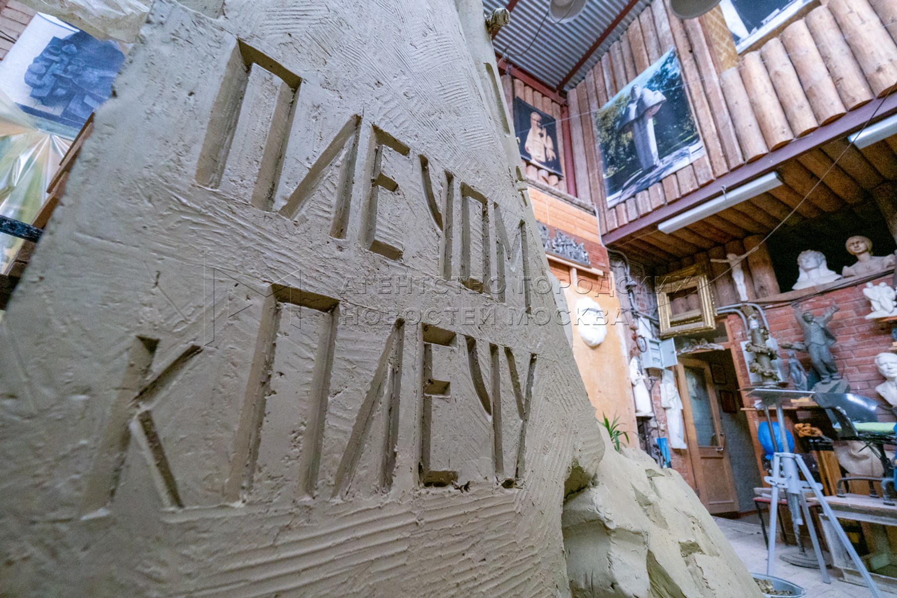 Работа над памятником бойцам 13-й Ростокинской дивизии в мастерской заслуженных х...
