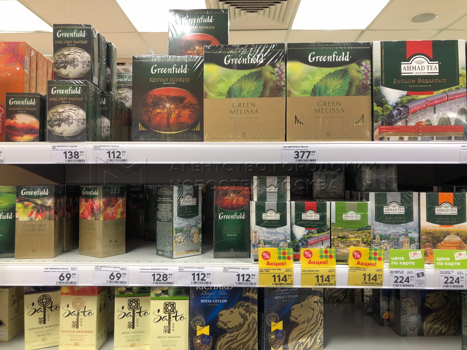 Продовольственные товары первой необходимости в магазинах Москвы.