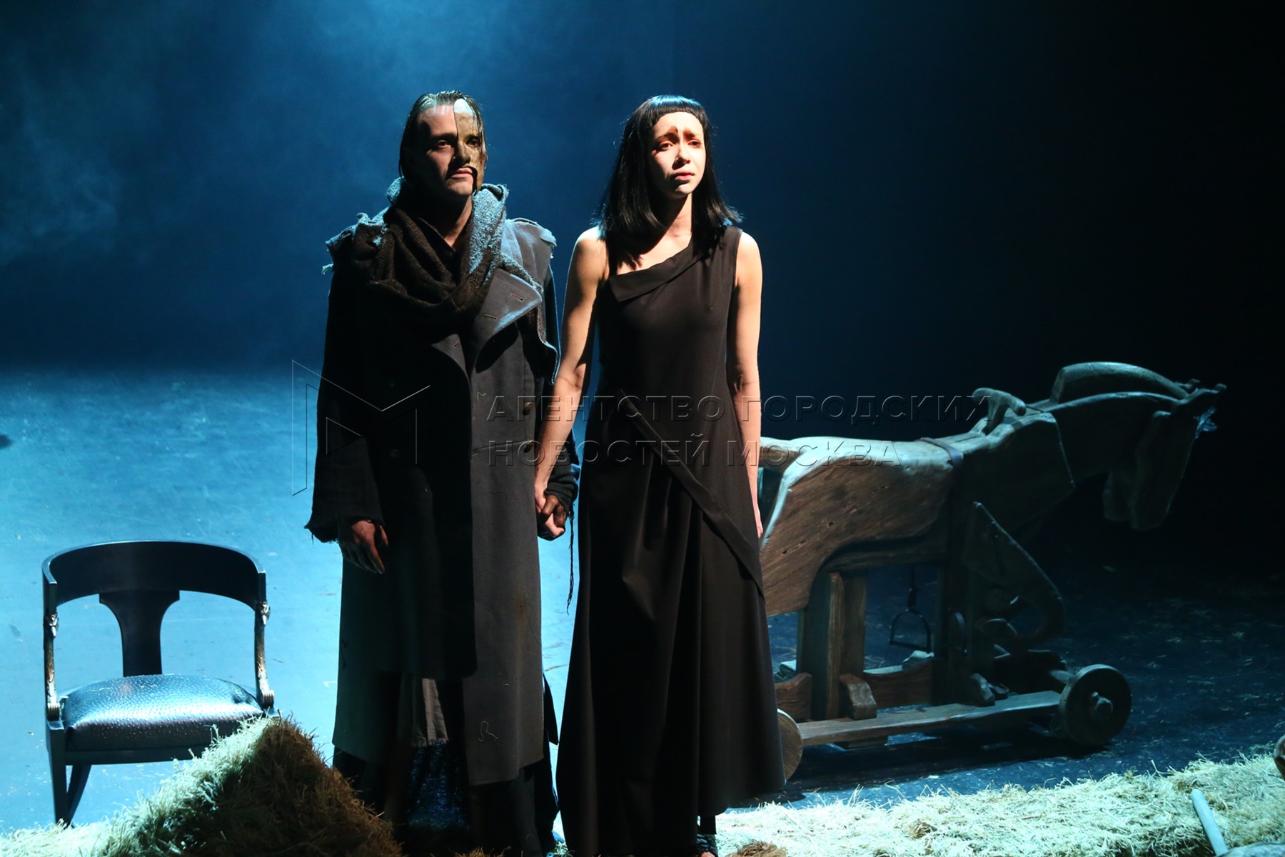 • Описание: Актер Владимир Логвинов в роли Эмилиана и актриса Евгения Ивашова в роли Реи во время показа премьерного спектакля «Ромул Великий» на новой сцене Театра имени Евгения Вахтангова.