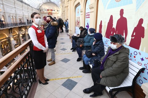 Работа мобильного пункта вакцинации от коронавируса в ГУМе.