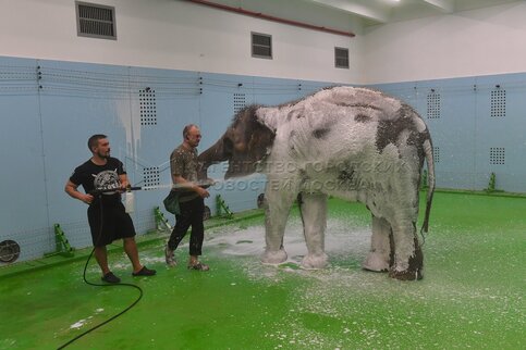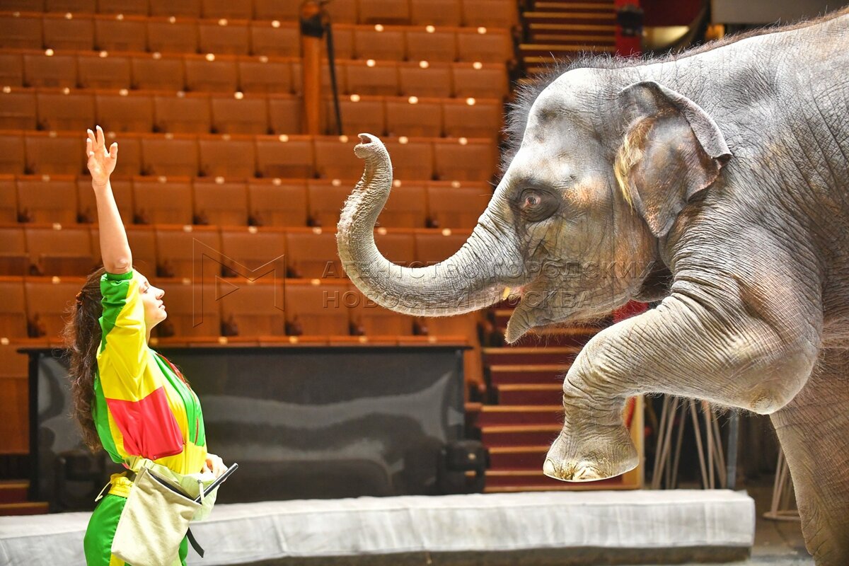 Дрессировщик Ярославна Демешко во время празднования четвертого дня рождения слон...