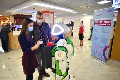 Пункт вакцинации от коронавируса в торгово-развлекательном центре «Океания» на Ку...