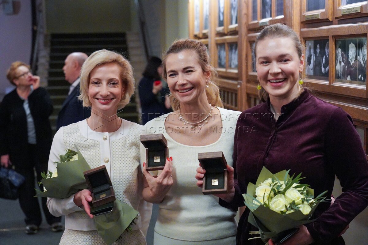Актрисы Мария Зорина, Ксения Лаврова и Светлана Колпакова (слева направо) на цере...