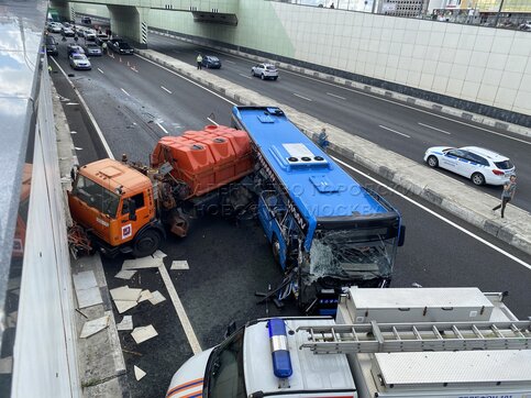 Последствия столкновения рейсового автобуса с грузовым автомобилем на Боровском ш...