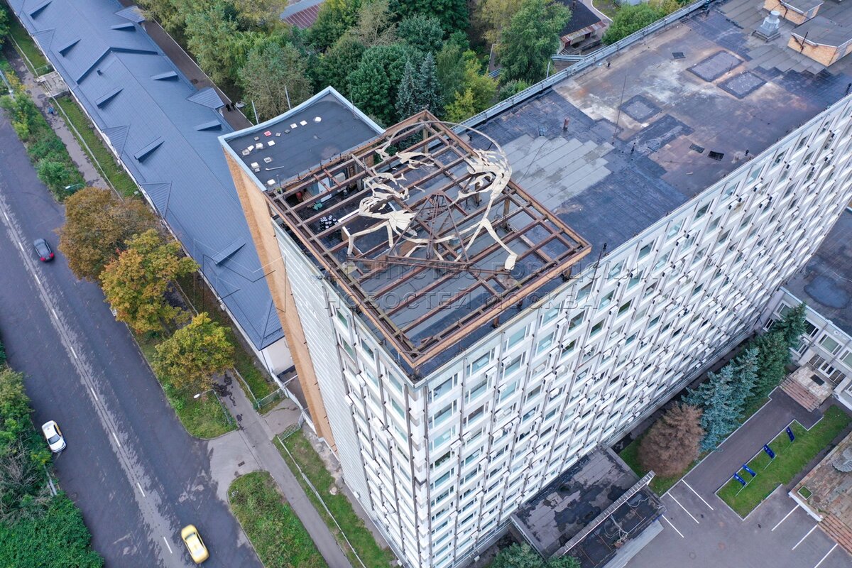 Вид с квадрокоптера на портрет Ленина на крыше здания АО «Научно-исследовательски...