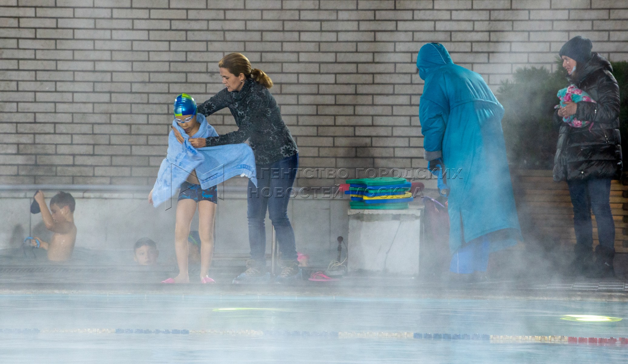 • Описание: Работа бассейна под открытым небом «Чайка» в центре Москвы.