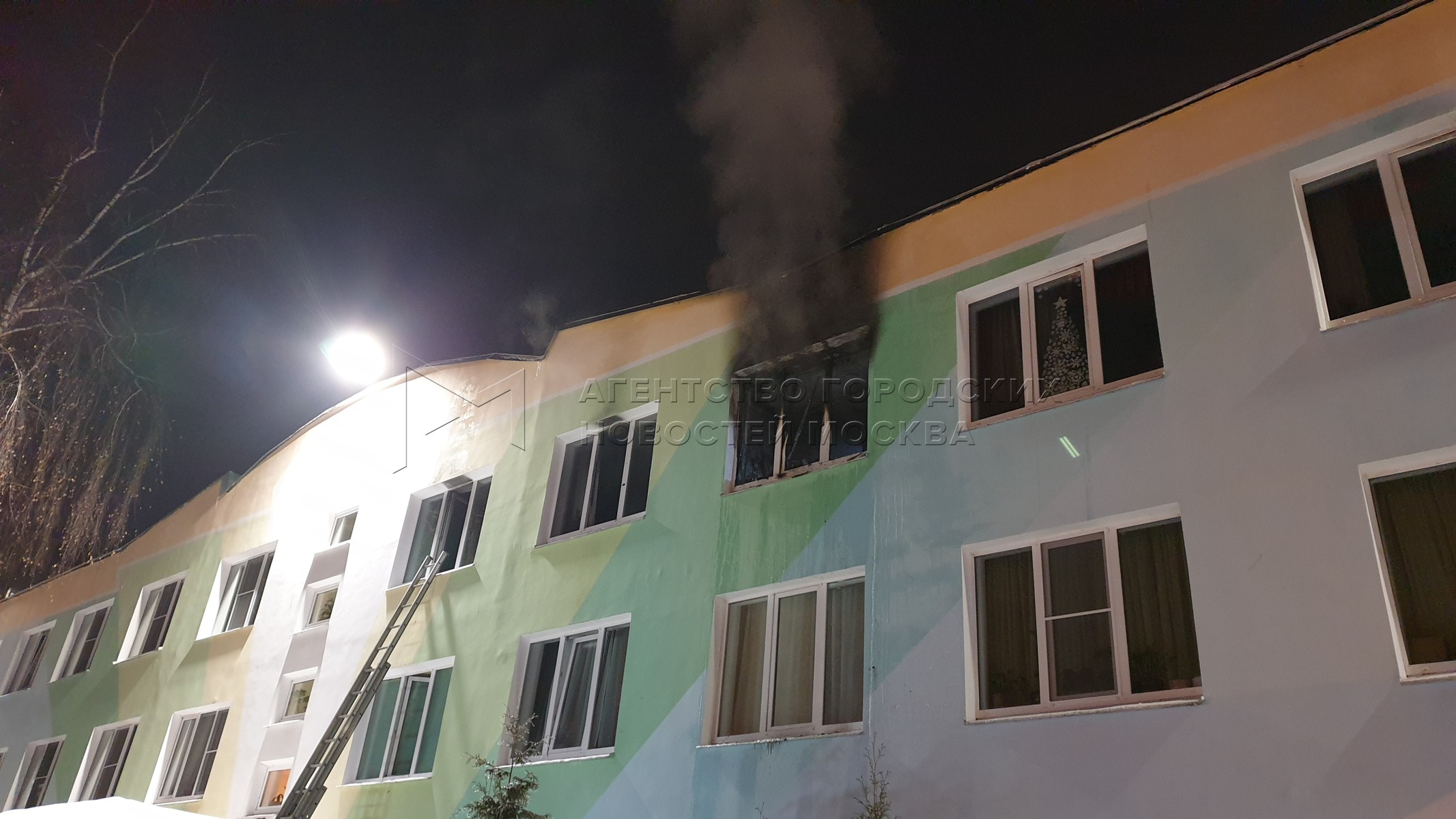 - Описание: Пожарно-спасательные подразделения на месте возгорания в центре содействия семейному воспитанию «Полярная звезда» на северо-востоке Москвы.