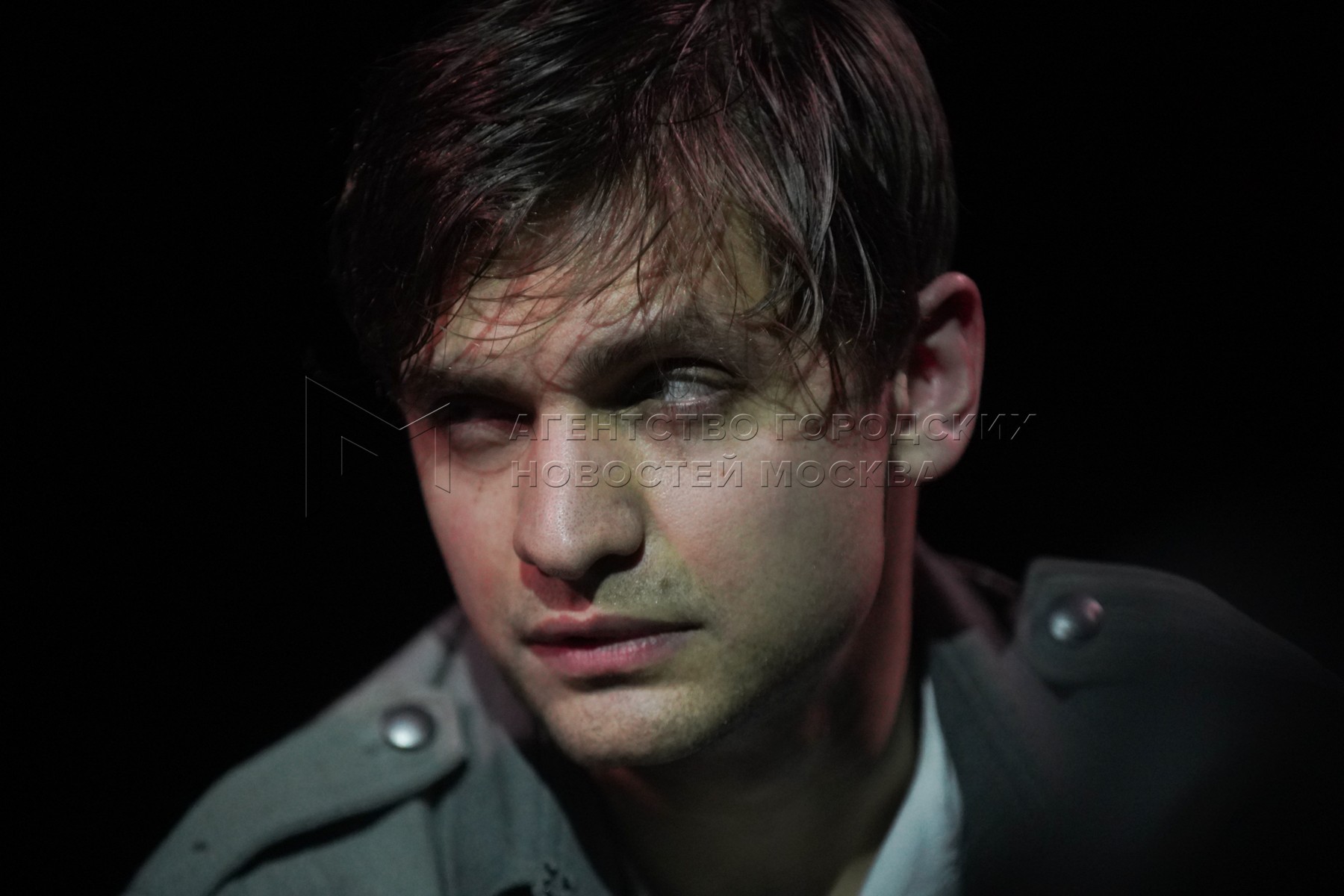 • Описание: Актер Алексей Петров в роли Андреса во время показа премьерного спектакля «Войцек» по пьесе Георга Бюхнера на Новой сцене Театра имени Вахтангова.
