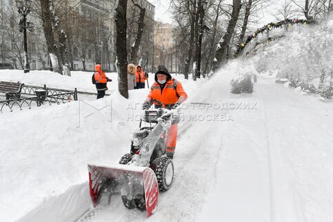 Работа коммунальных служб по устранению последствий снегопада в Москве.