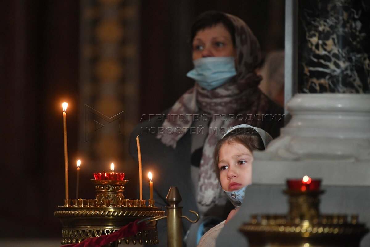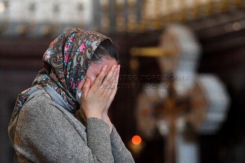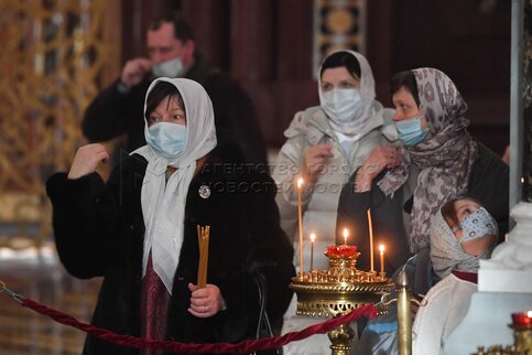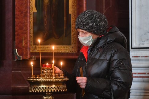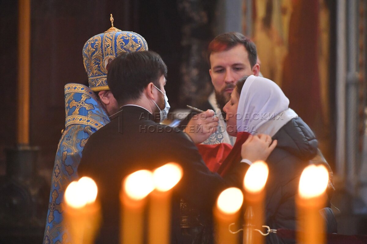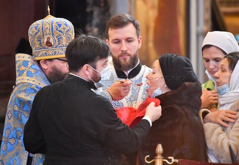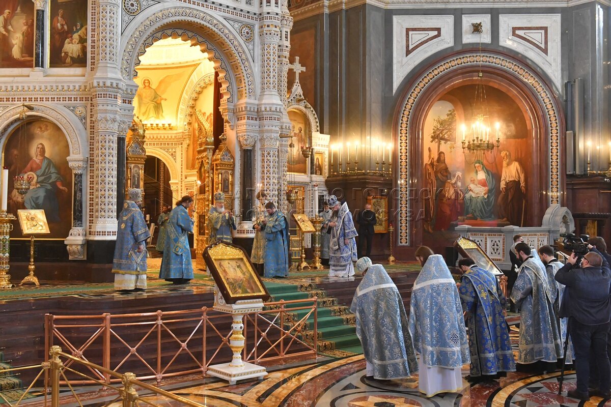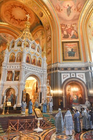 Божественная литургия в праздник Сретения Господня в храме Христа Спасителя.