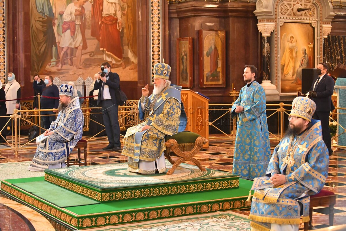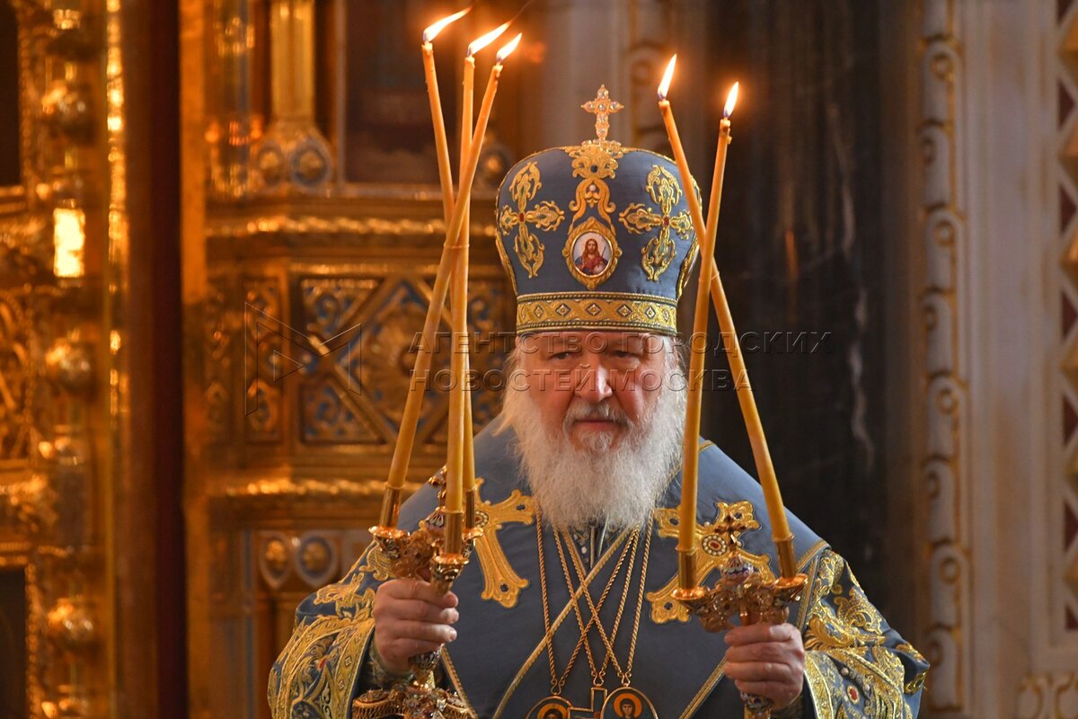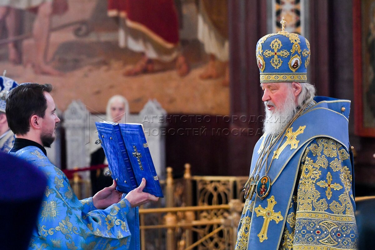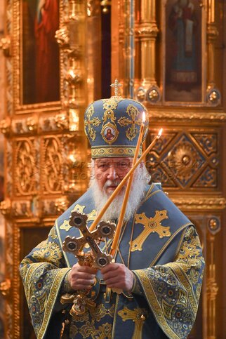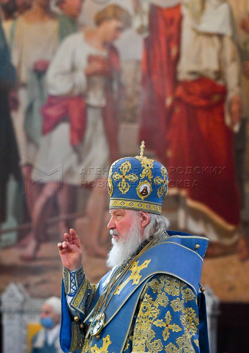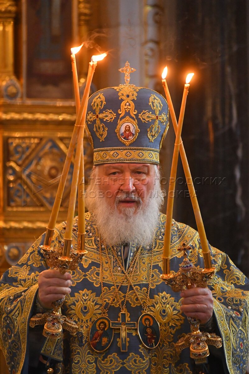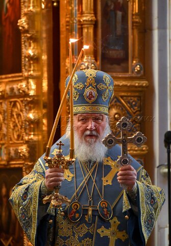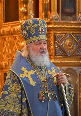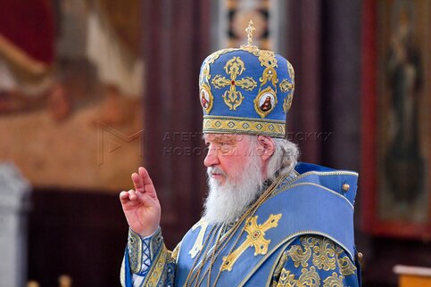 Патриарх Московский и всея Руси Кирилл во время Божественной литургии в праздник ...
