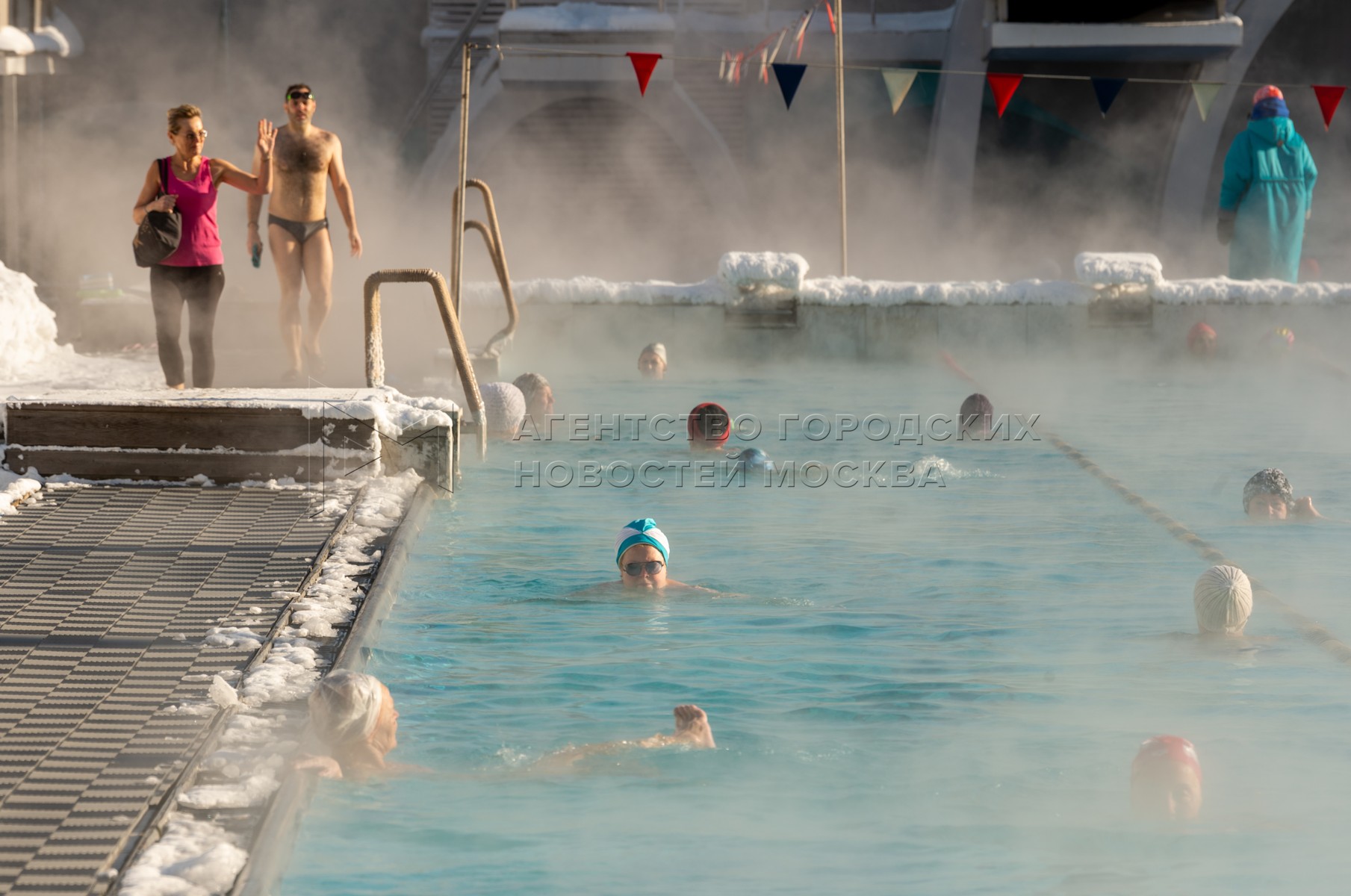 • Описание: Работа московского бассейна под открытым небом «Чайка» в морозную погоду.