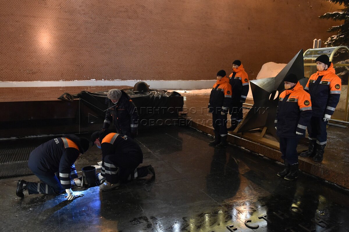 • Описание: Профилактика горелки Вечного огня на Могиле Неизвестного Солдата в Александровском саду в преддверии Дня защитника Отечества.