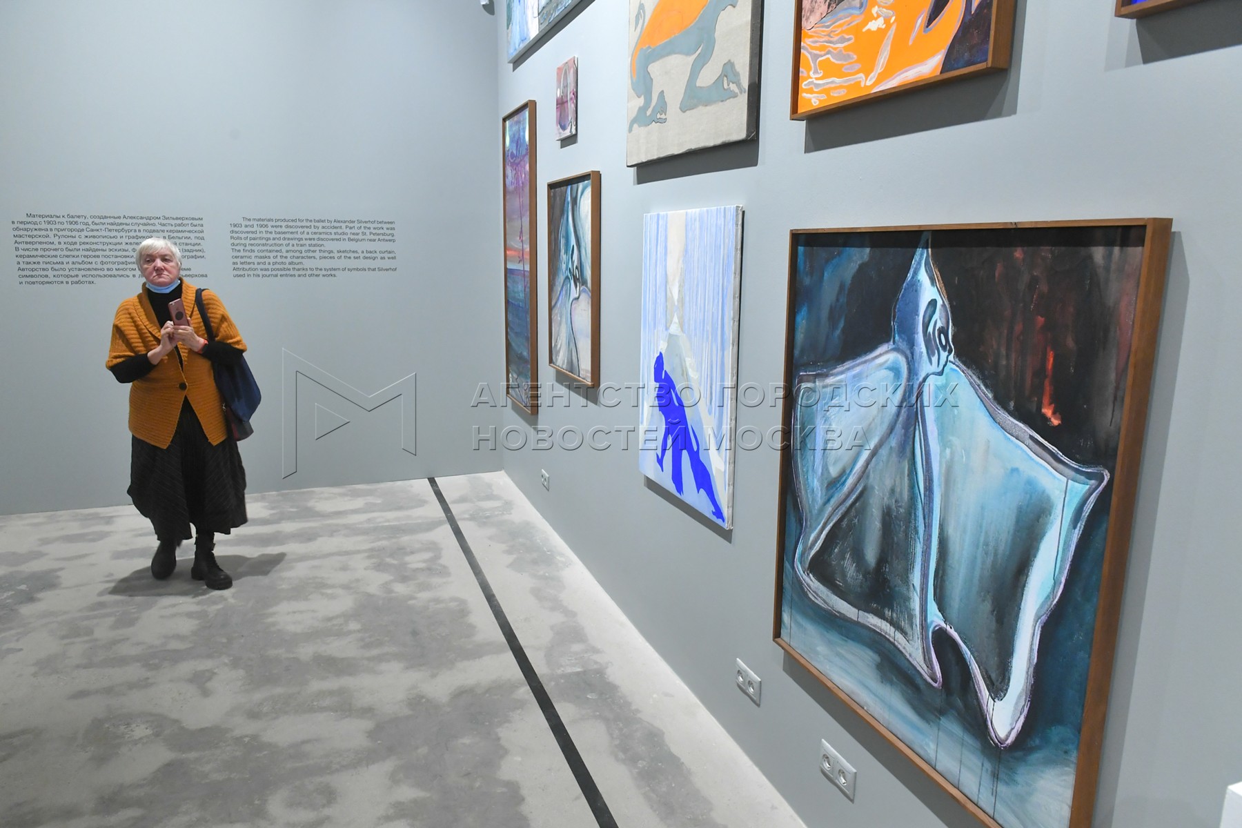 • Описание: Посетительница на выставке-инсталляции «Николай Кошелев. The Moon Pool*. Архив» в Новой Третьяковке.
