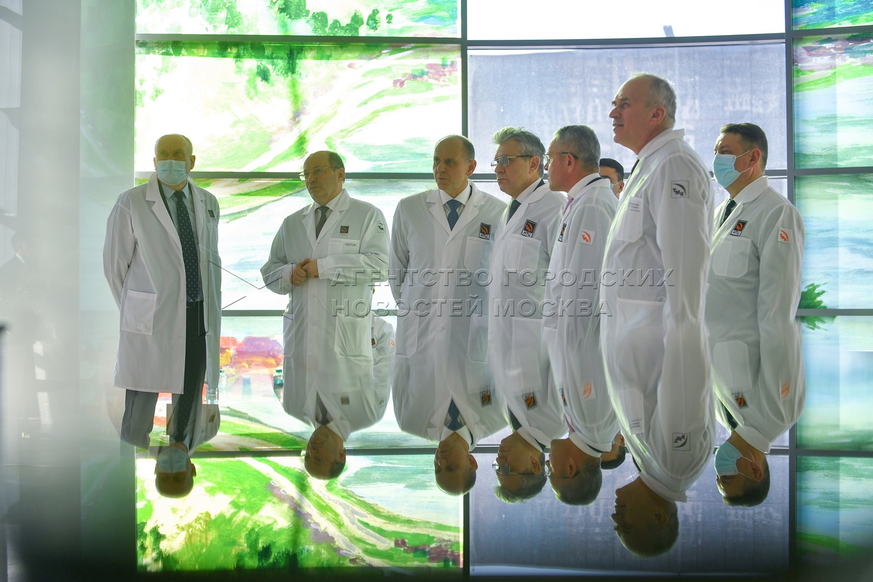 Президент РАН академик Александр Сергеев (третий слева) в научно-техническом цент...
