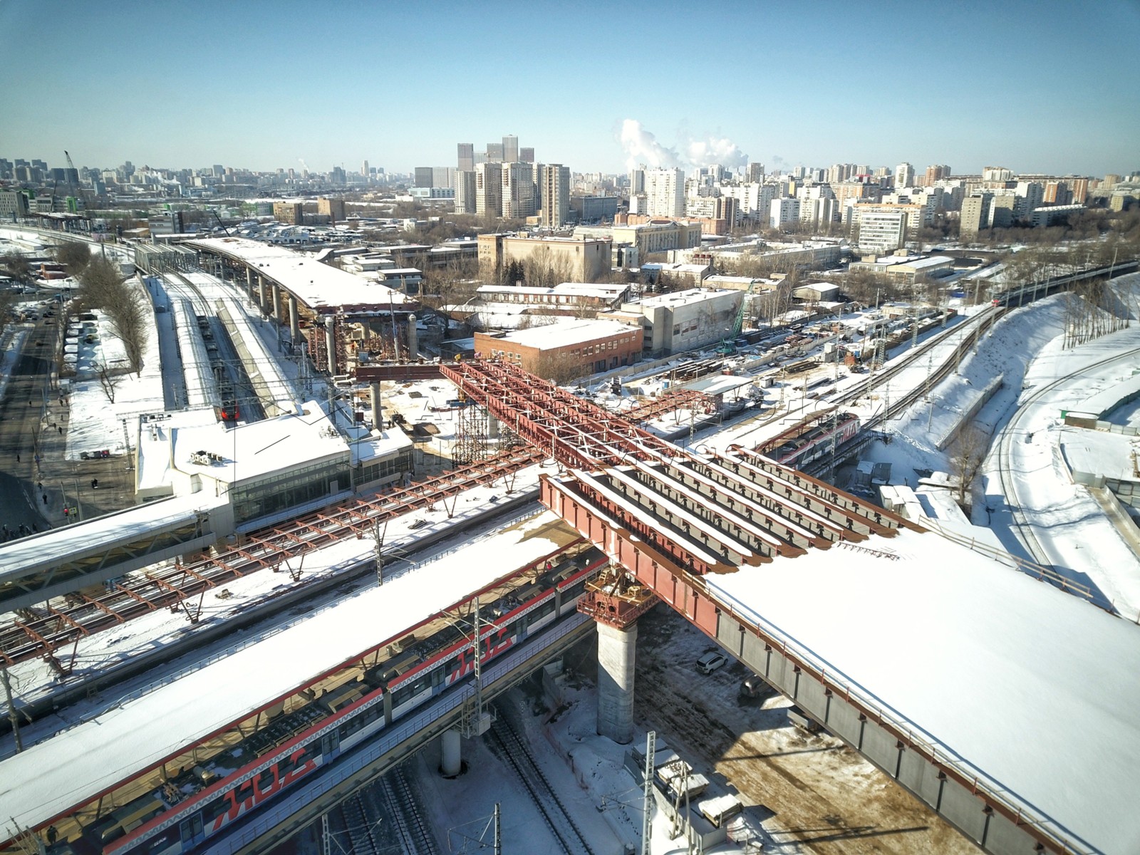 Вид с квадрокоптера на строительство Северо-Восточной хорды (СВХ) на участке от ...