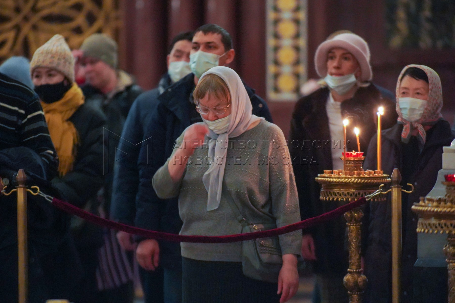 Прихожане во время Божественной литургии в Прощеное воскресенье в кафедральном со...