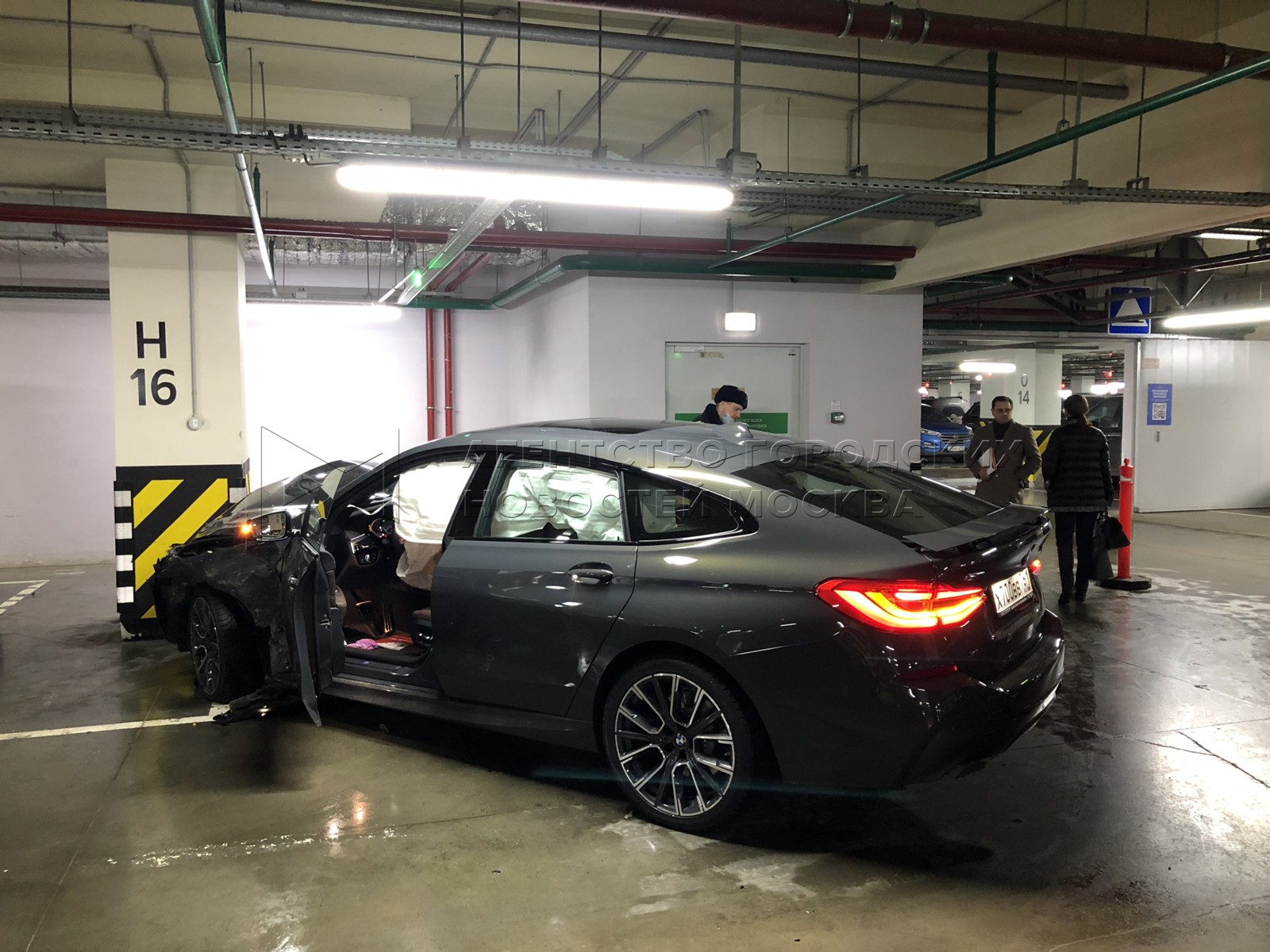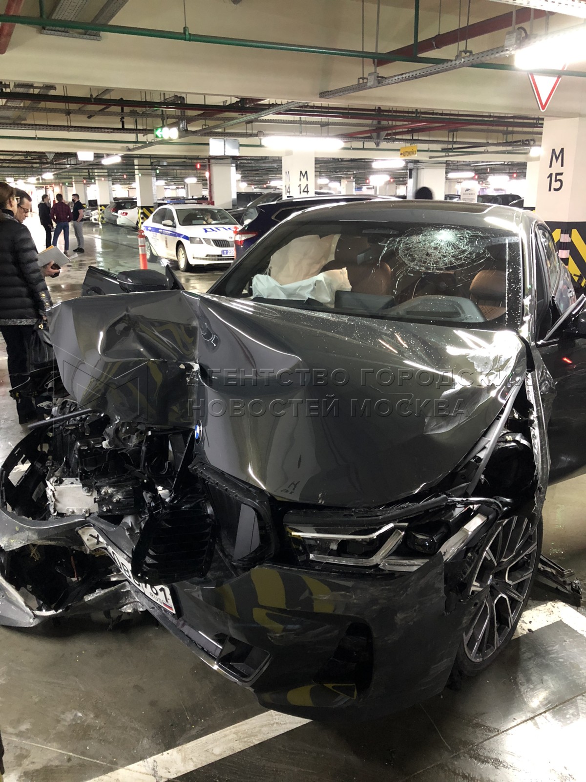 • Описание: Последствия столкновения двух автомобилей в подземном паркинге ТРЦ Columbus на юге Москвы.