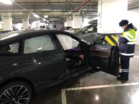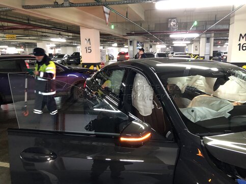 • Заголовок: Последствия столкновения двух автомобилей в подземном паркинге ТРЦ Columbus на юге Москвы