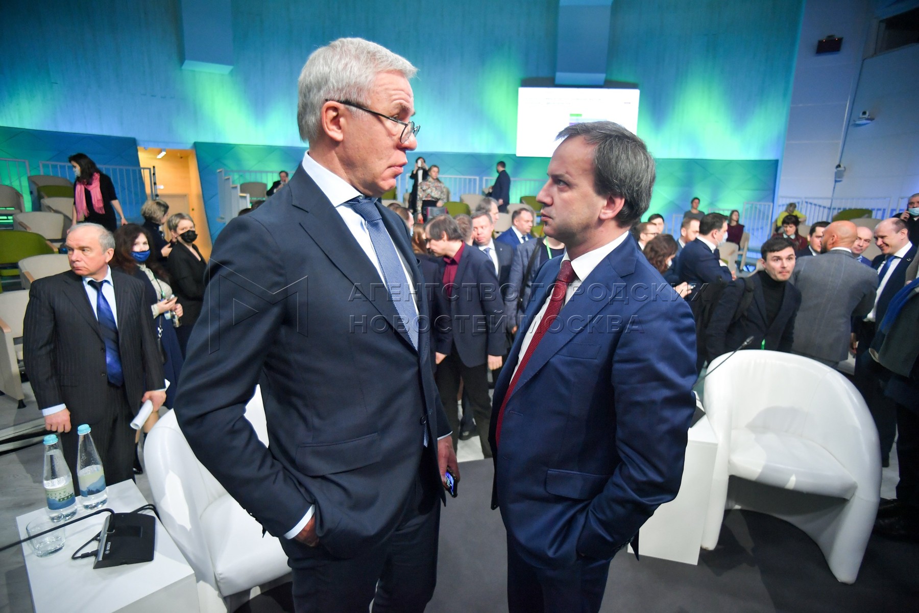 • Описание: Посол доброй воли ООН по Арктике и Антарктике, председатель Центрального совета ВООП Вячеслав Фетисов (слева) и председатель Фонда «Сколково» Аркадий Дворкович во время Международного форума-выставки «Чистая страна» в технопарке «Сколково».