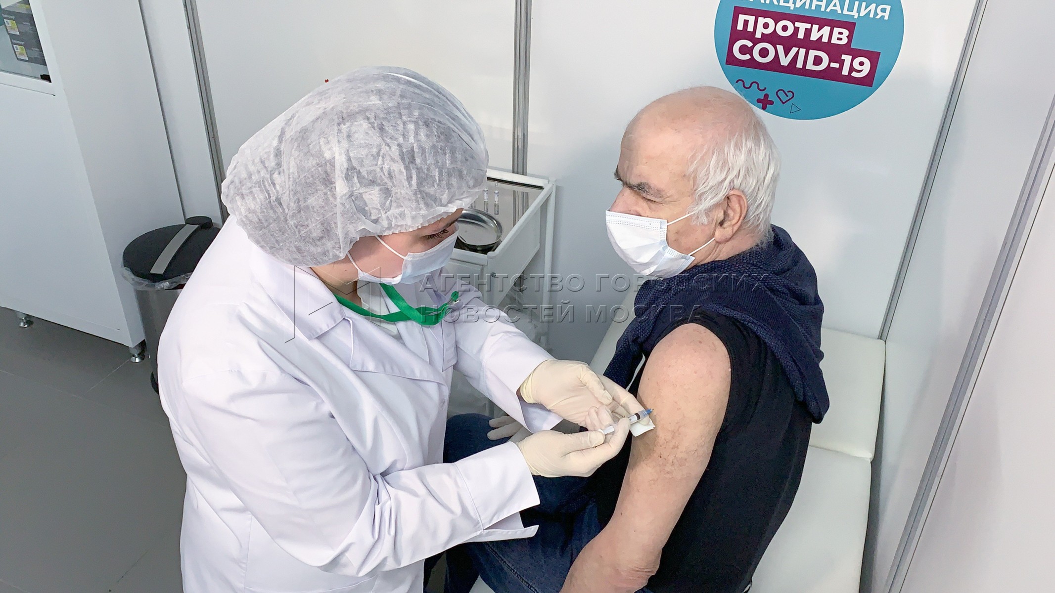 Работа нового выездного пункта вакцинации от коронавируса в торгово-развлекательн...