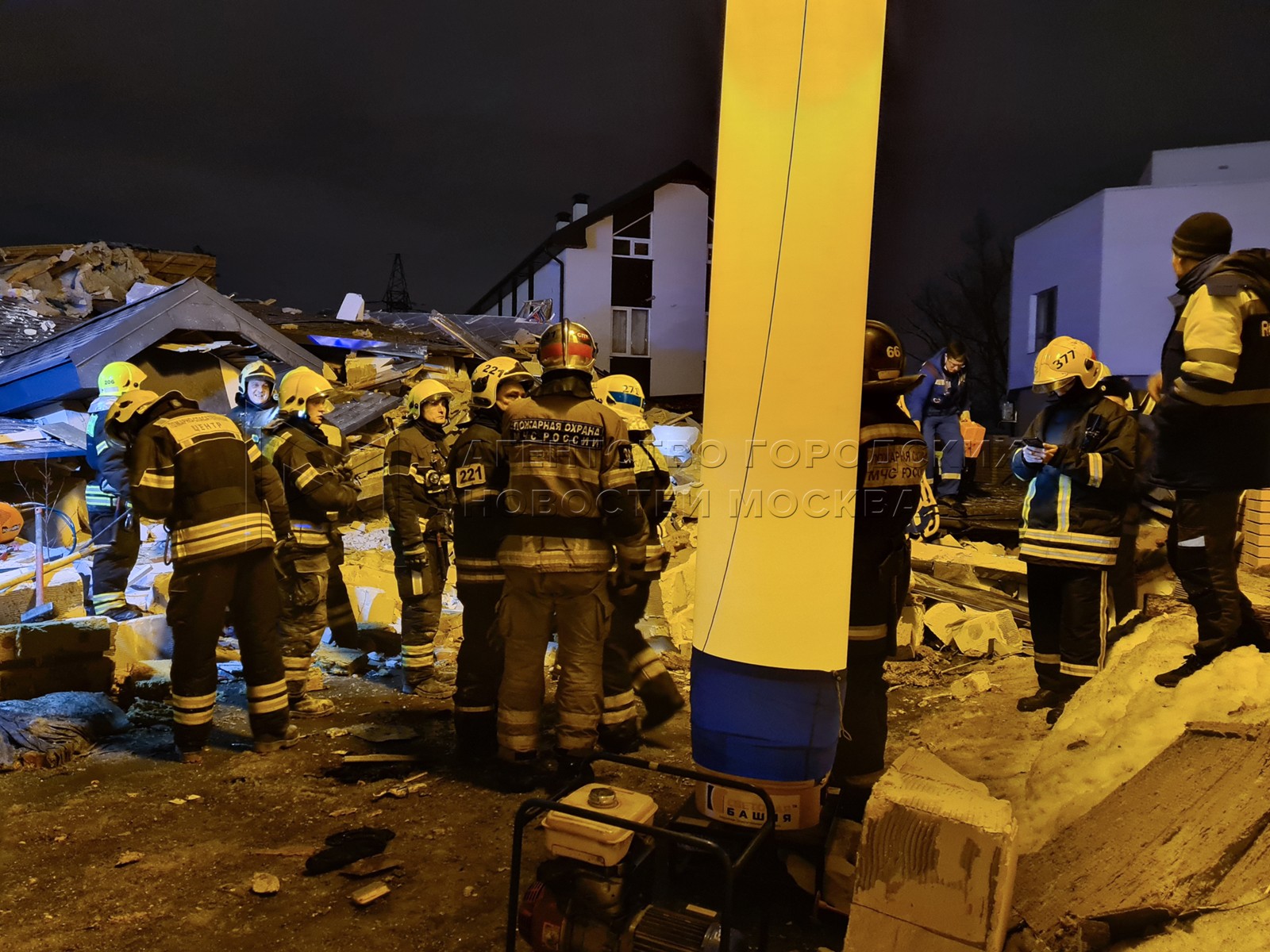 • Заголовок: Спасатели на месте обрушения частного дома в ТиНАО из-за взрыва газа