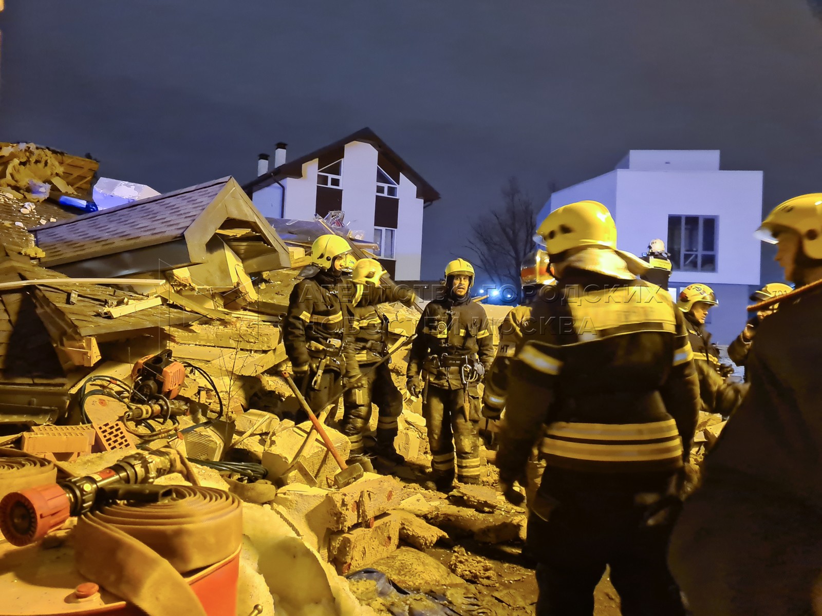 • Заголовок: Спасатели на месте обрушения частного дома в ТиНАО из-за взрыва газа