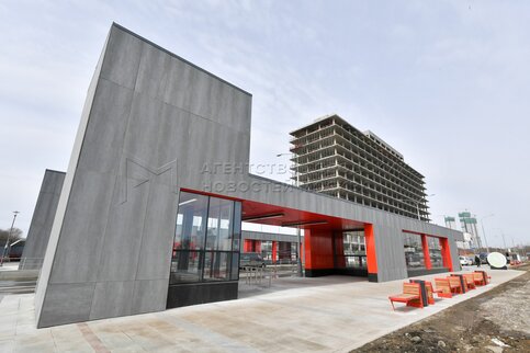 Наземный вестибюль станции «Народное Ополчение» Большой кольцевой линии столичног...