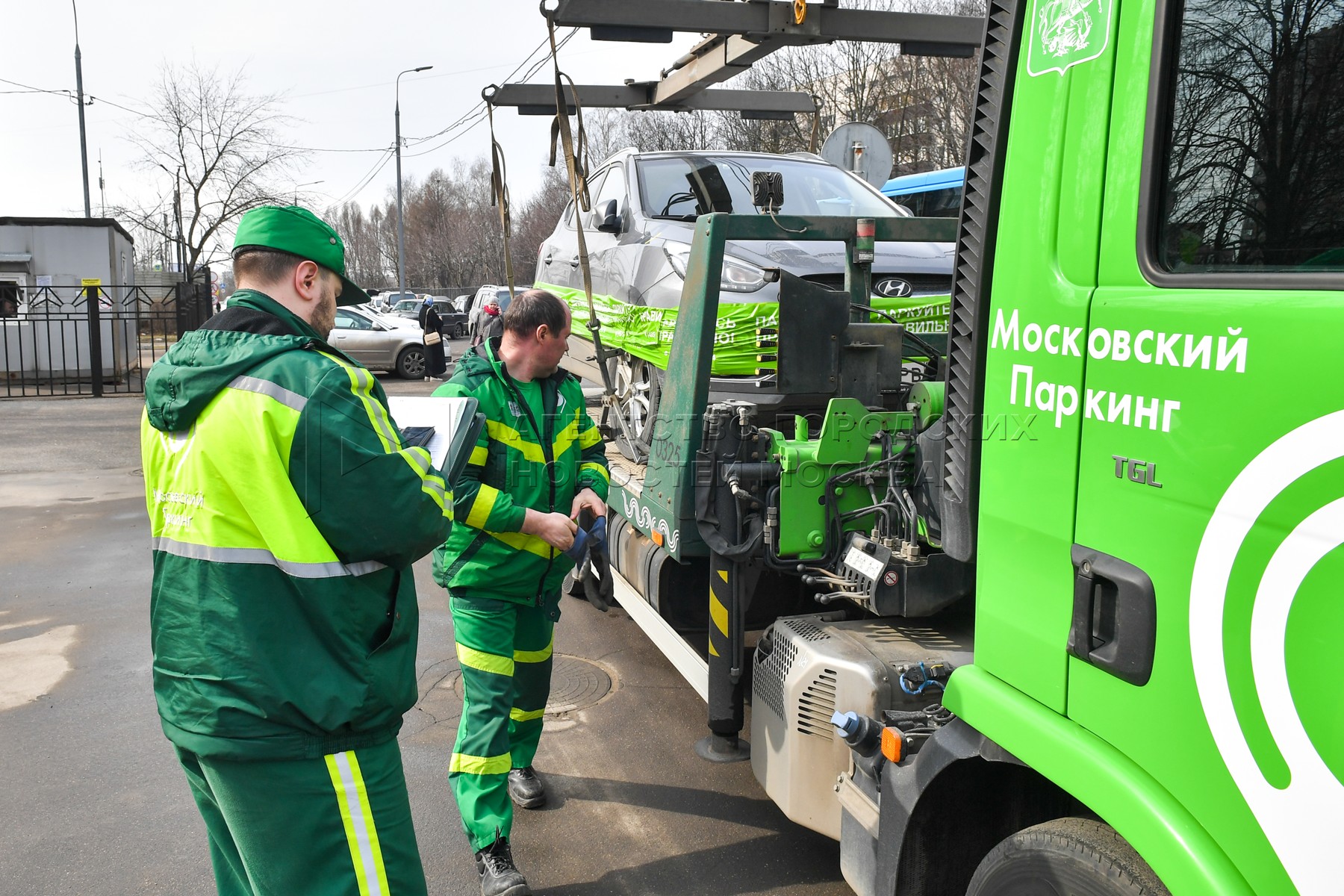 - Заголовок: Работа инспекторов «Московского паркинга» по эвакуации автомобилей за нарушения правил парковки