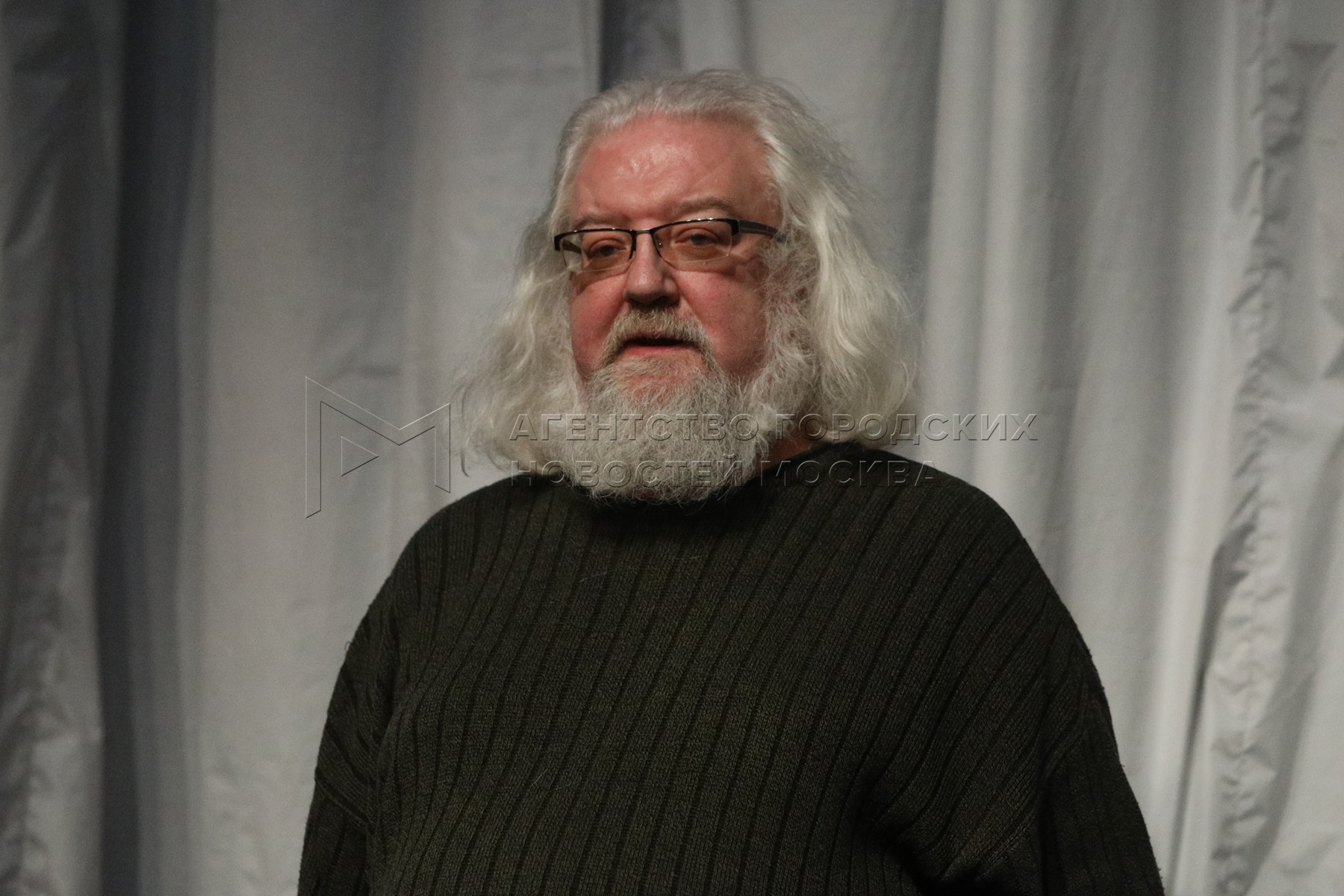 Российский журналист Андрей Максимов во время пресс-показ спектакля «Гроза прошла...