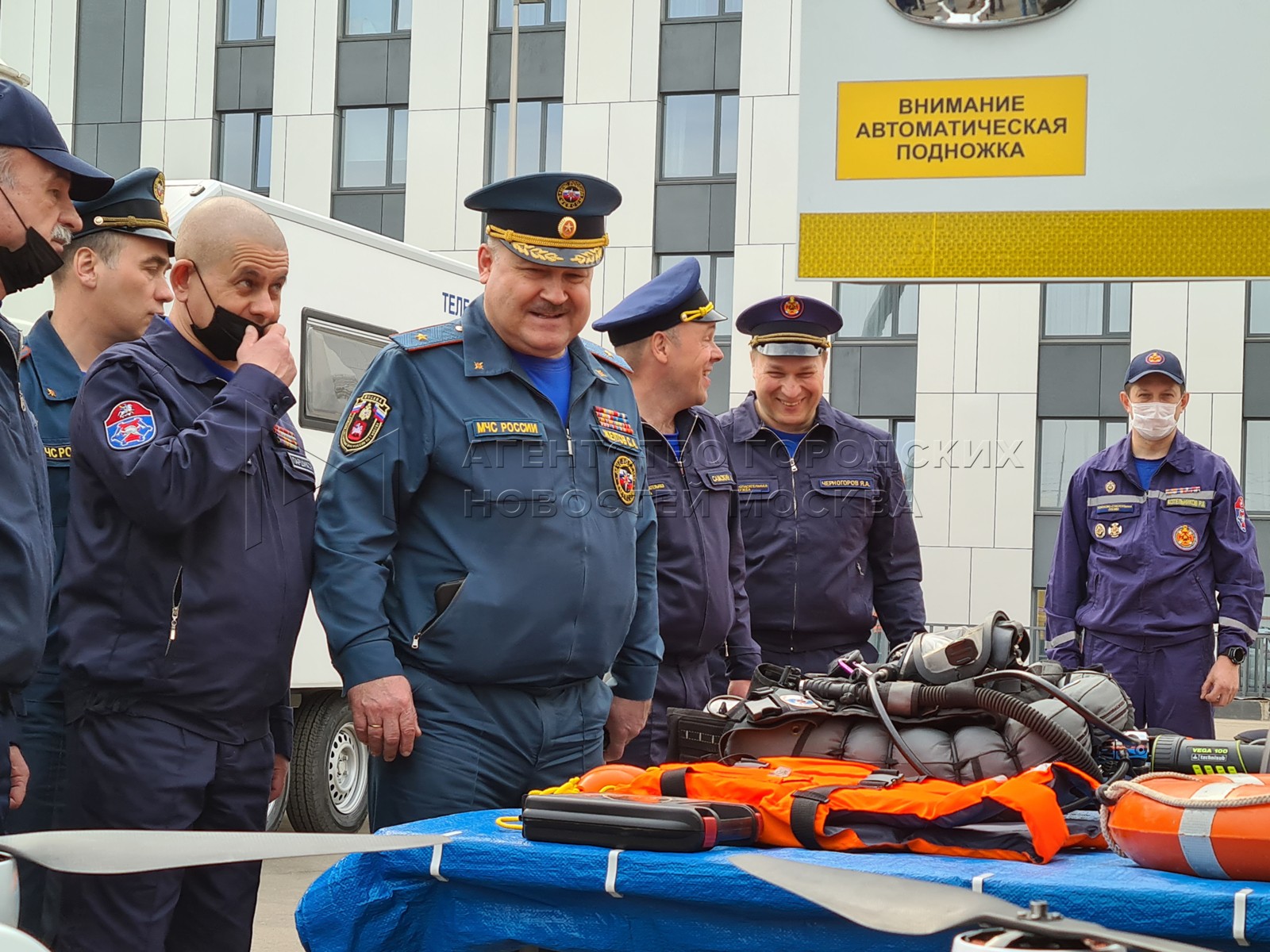 Начальник Главного управления МЧС России по г. Москве Сергей Желтов (по центру) в...