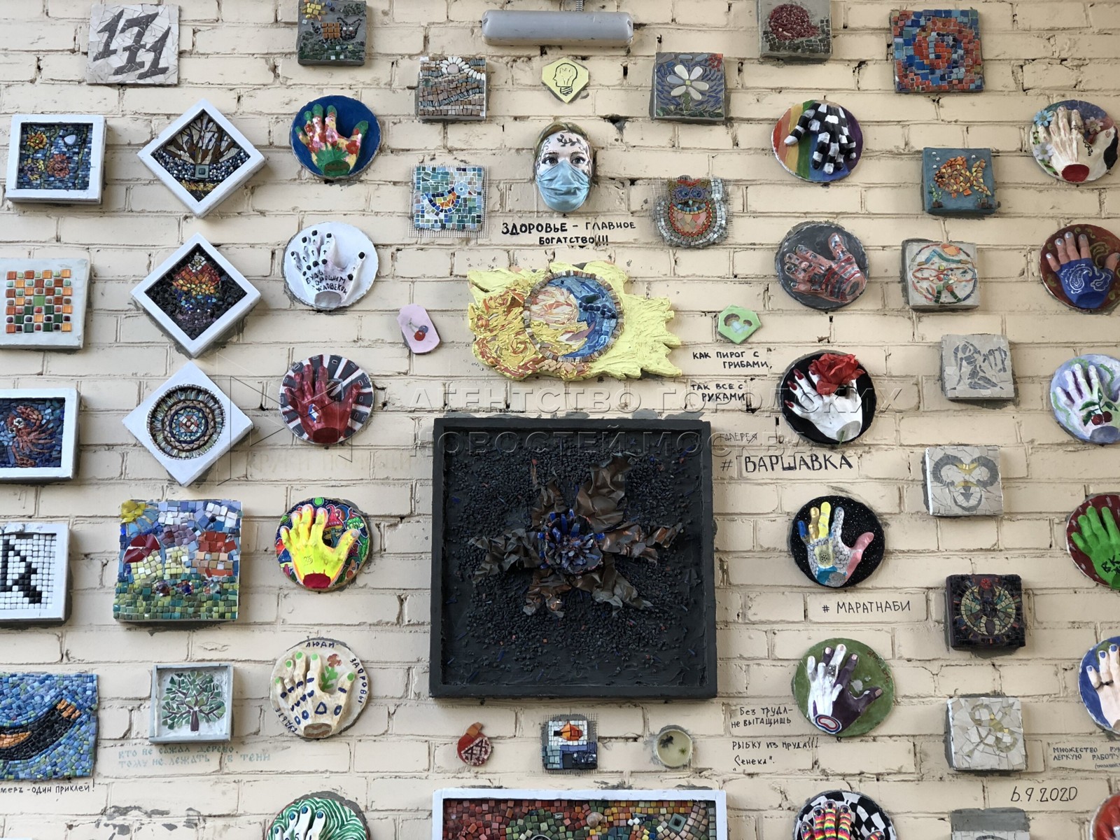 Украшение арки жилого дома на Варшавском шоссе художественной работой «Руки помощ...