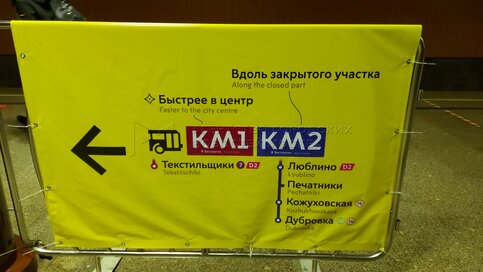 - Описание: Объявления о закрытии с 1 по 23 мая участка между станциями «Дубровка» и «Волжская» Люблинско-Дмитровской линии Московского метрополитена для прокладки тоннеля Большой кольцевой линии (БКЛ) подземки.