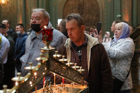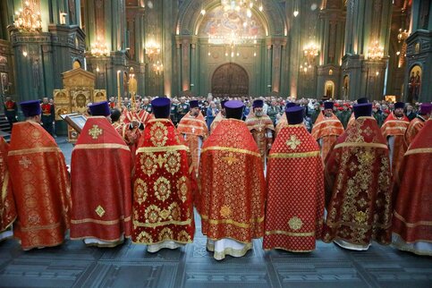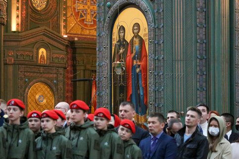Божественная литургия в храме Вооруженных сил РФ, посвященная 76-й годовщине Победы в Великой Отечественной войне.