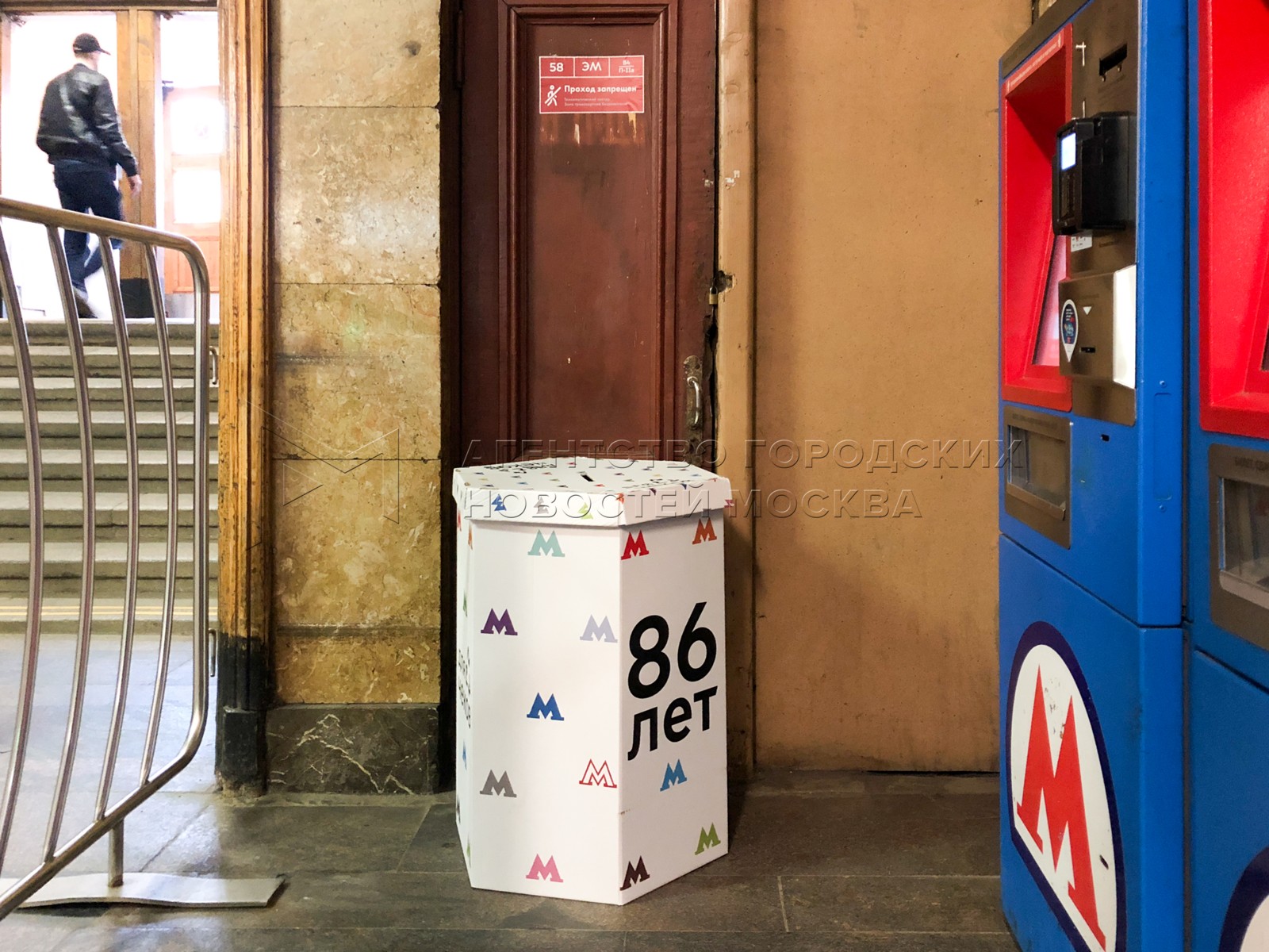• Описание: Установленный на станции «Киевская» Кольцевой линии Московского метрополитена специальный ящик для сдачи кассовых чеков на переработку.