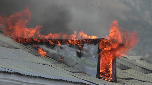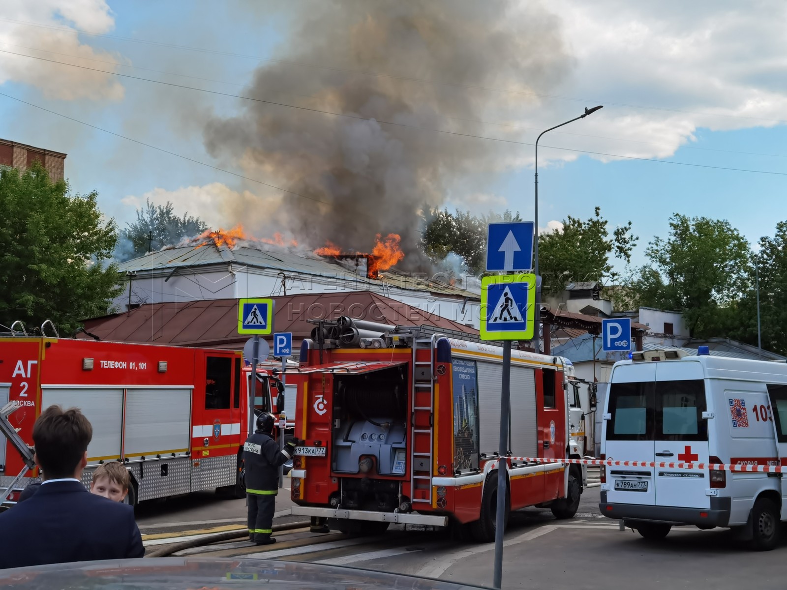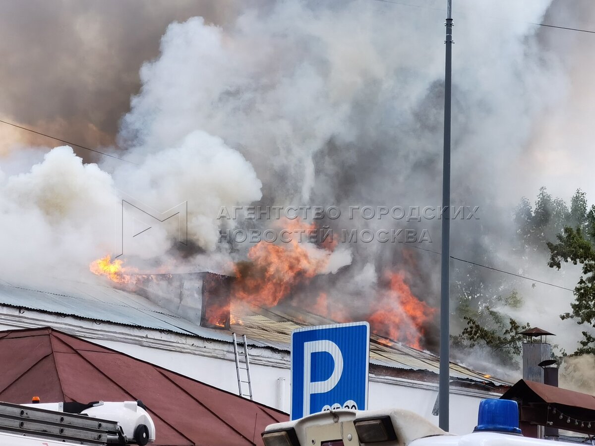 - Заголовок: Работа пожарных расчетов на месте возгорания в нежилом здании на Серебрянической набережной