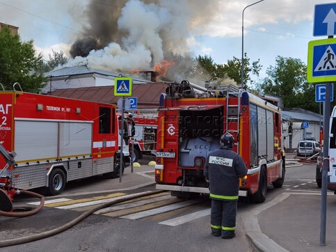 - Описание: Работа пожарных расчетов на месте возгорания в нежилом здании в центре столицы по адресу: Серебряническая набережная, д. 19.