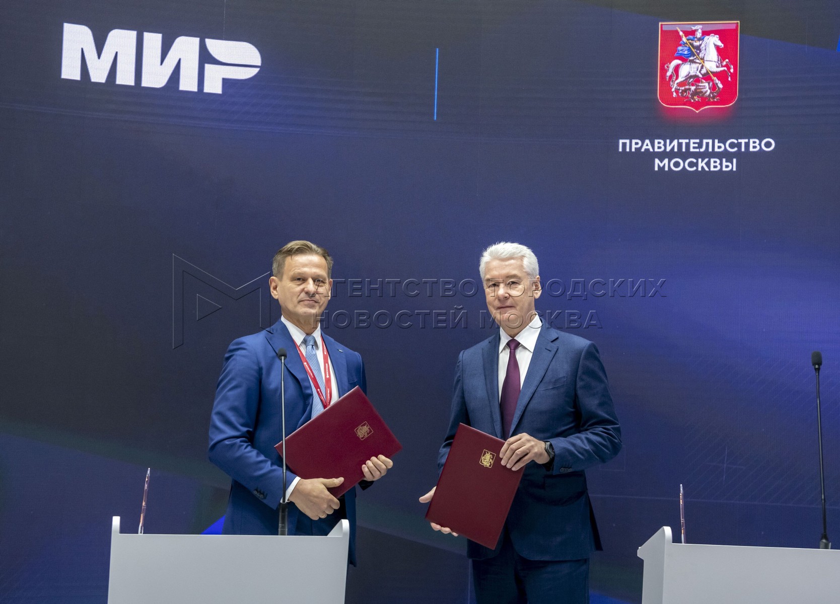 Генеральный директор АО «НСПК» Владимир Комлев (слева) и мэр Москвы Сергей Собяни...