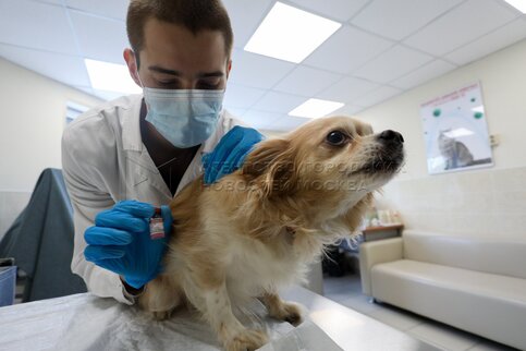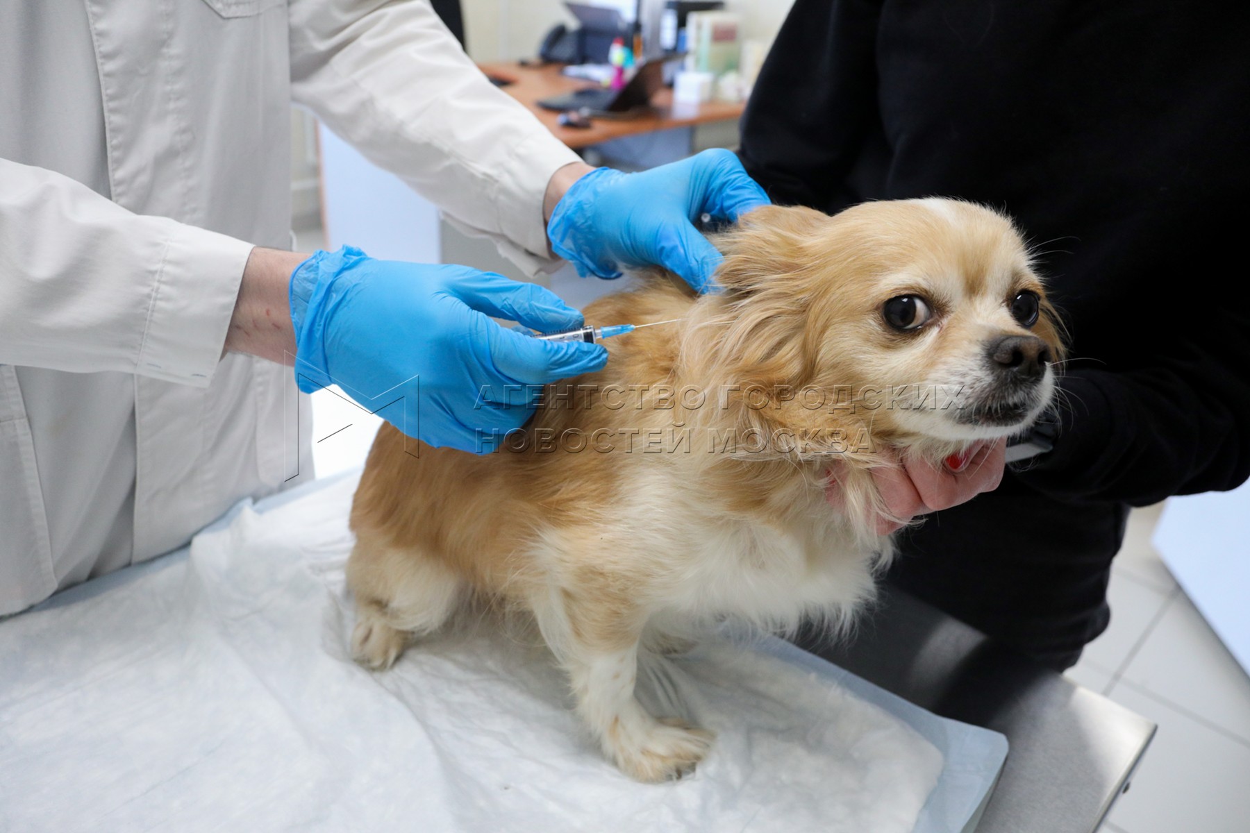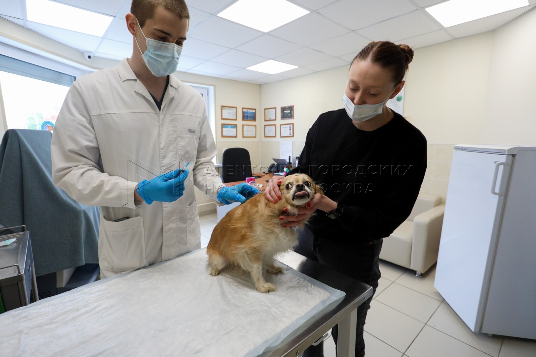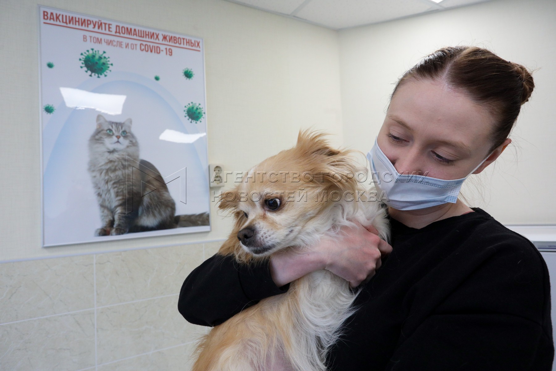 Вакцинация животных от коронавируса в ветеринарной клинике в Москве.